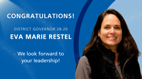 In addition to her club involvement, Eva Marie currently serves as an Assistant Governor to District 6250. The district congratulates Eva Marie Restel and looks forward to her leadership in the years ahead.