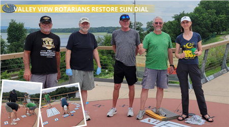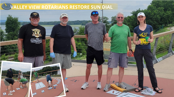 A group of Valley View Rotarians noticed that the Sun Dial at the Great River Landing Bike Trailhead in Onalaska, Wisconsin was faded and needed maintenance. They worked with the city of Onalaska Park & Rec Department to devise a plan to refurbish the Sun Dial.