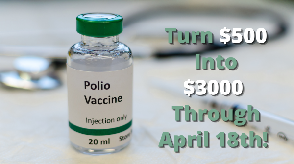 District 6250 clubs have a powerful opportunity to multiply their impact in the fight to end polio. From February 1 through April 18, 2026, the Wisconsin Rapids Rotary Club and the Charles and Gayle Gibbons Family Charity Funds will match up to $500 per club donated to PolioPlus. With the additional 2:1 match from the Gates Foundation, a $500 club donation becomes $3,000 for polio vaccines.